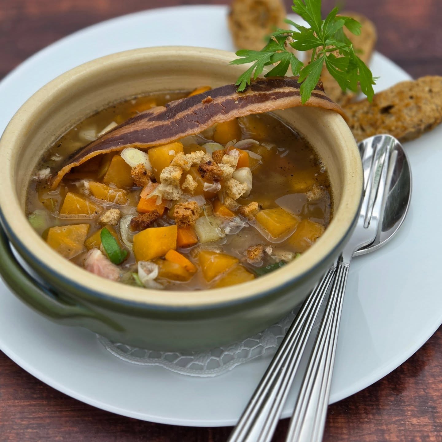 Traditionelle Methoden wie Räuchern, Einlegen, Säuern und Salzen werden von uns bewahrt